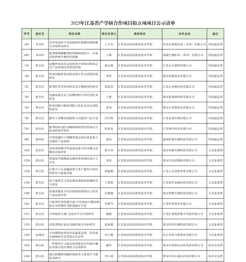 近日,江苏省科技厅对2025年产学研合作项目拟立项名单进行公示,胜游娱乐成功获批立项21项,获批总项数创历年新高,在全省“双高计划”建设高职院校中排名第5,充分彰显了学校在产教融合、科研创新和服务区域产业发展方面的实力。