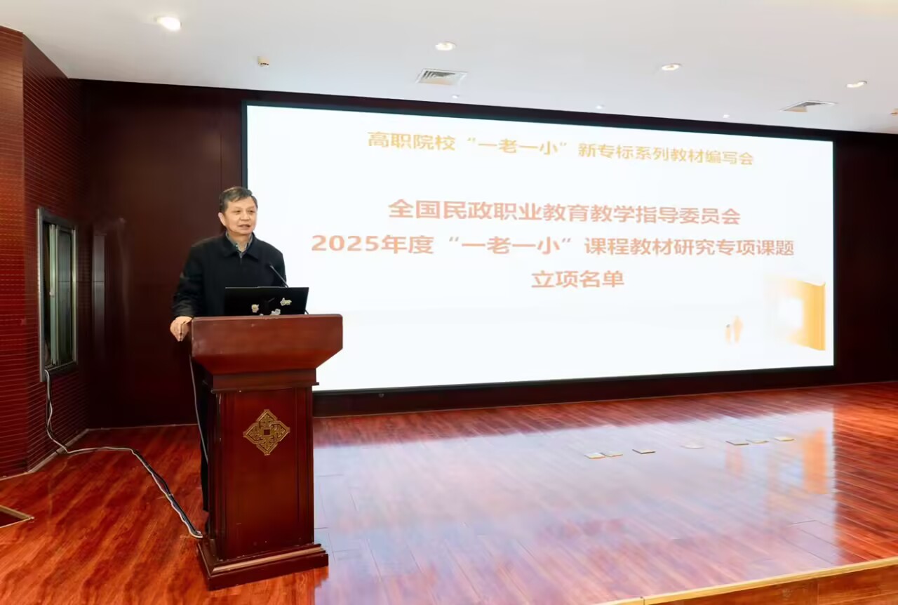 全国民政职业教育教学指导委员会副主任委员、儿童服务专委会主任蒋晓明宣布“全国民政行指委2025年度‘一老一小’课程教材研究专项课题”及“高职院校‘一老一小’新专标系列教材”立项名单。